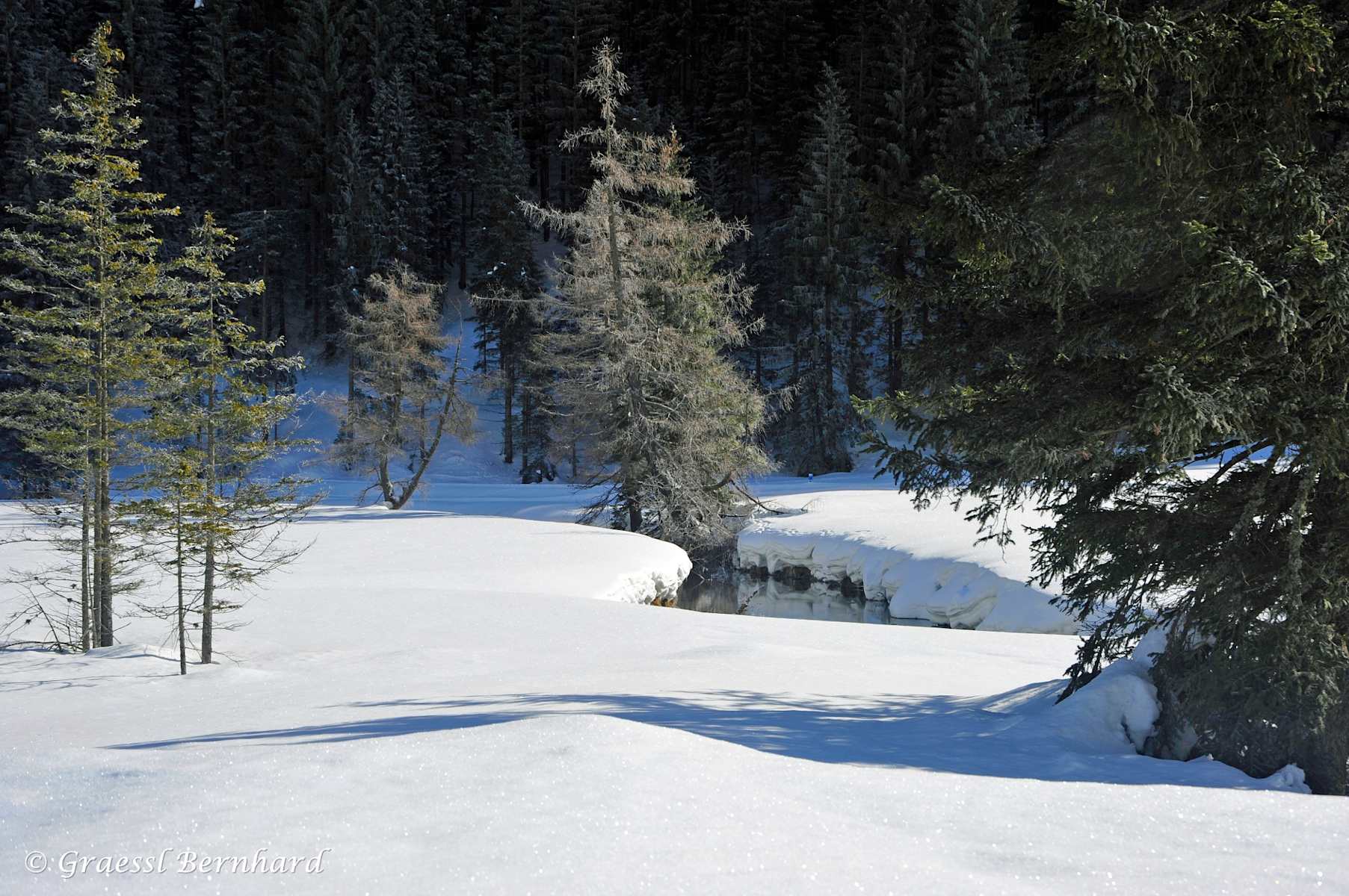Unter einer eichten Eis und Schneedecke verbirgt sich das Naturjuwel Stappizersee. Foto: NPR, B. Grässl, Hohe Tauern - die Nationalpark-Region in Kärnten Tourismus GmbH