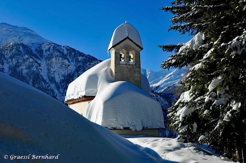 Weiter geht es auf der Alten Glocknerstraße vorbei am Bauernhof Zaderer (höchstgelegener Bauernhof in Heiligenblut) und vor der nächsten Kehre links über den Almweg zur Gipperkapelle. Der Ausblick von der Denkmal geschützten Gipperkapelle auf Heiligenblut ist einzigartig und lohnenswert. Zurück geht es über den selben Weg in den Talboden von Heiligenblut.