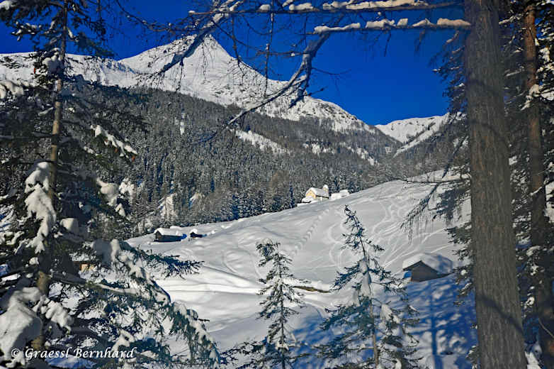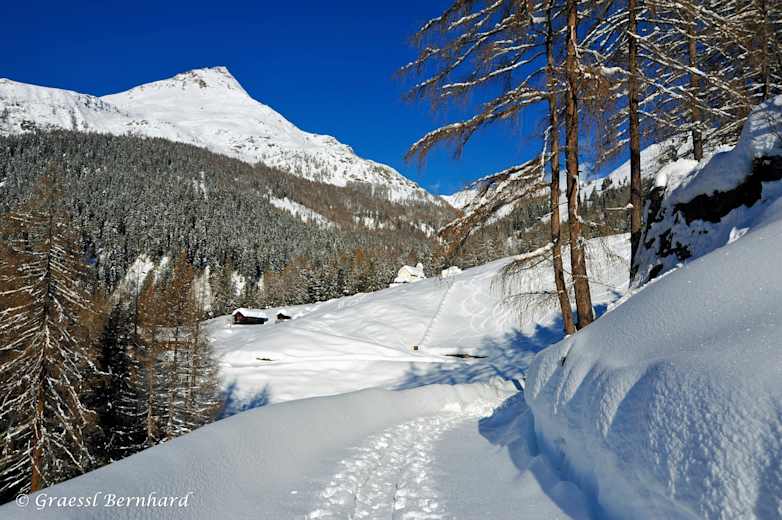 Der Winterwanderweg führt entlang der Alten Glocknerstraße zur Gipperalm Foto: NPR/B. Grässl, Hohe Tauern - die Nationalpark-Region in Kärnten Tourismus GmbH