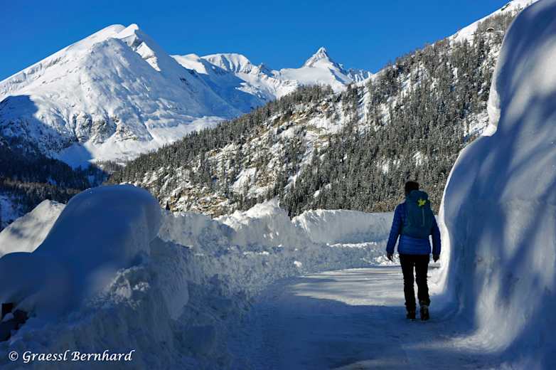 Eine großartige und aussichtsreiche Winterwanderung durch die einzigartige Landschaft am Fuße des winterlichen Großglockners (3.798 m). Man genießt ein herrliches Panorama auf den höchsten Berg Österreichs und die Gipfel in seiner Umgebung.