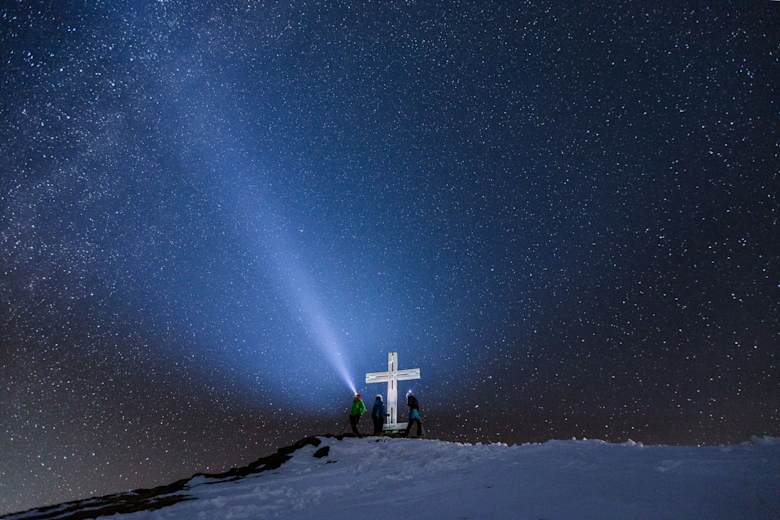 An der Bergstation Schareck beginnt der Winterwanderweg leicht ansteigend hinauf zum Gipfelkreuz.Foto: Nationalpark Region Hohe Tauern Kärnten, Hohe Tauern - die Nationalpark-Region in Kärnten Tourismus GmbH