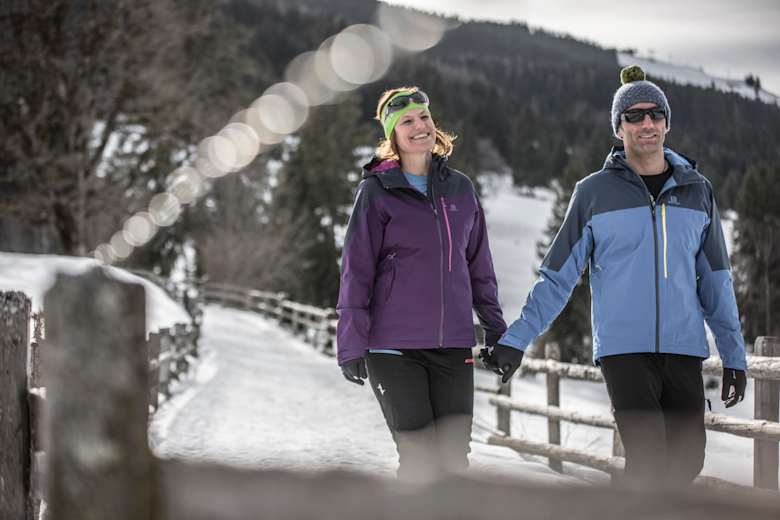 Man genießt bei dieser naturnahen Winterwanderung vor allem das herrliche Panorama der Leoganger Steinberge.