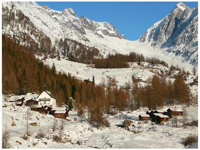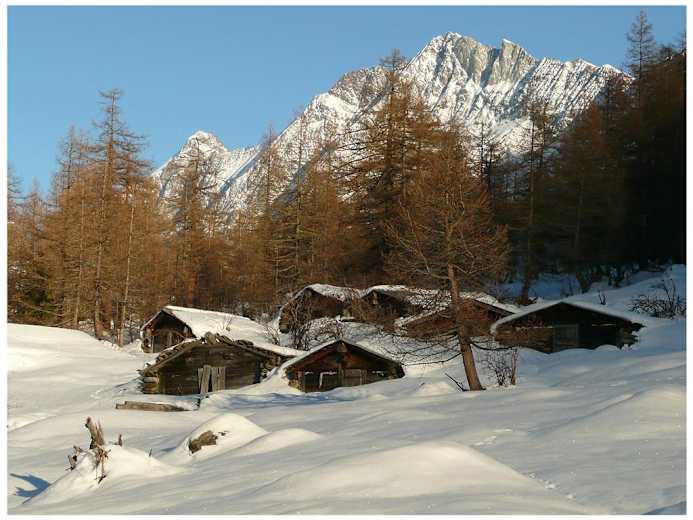 Gemütliche Winterwanderung im Oberwallins in den Berner Alpen: Durch die verschneite Winterlandschaft geht es auf dieser Tour ohne Hast vom hintersten Dorf im Lötschental - Blatten - entlang des wilden Talflusses Lonza zum bekannten Wallfahrtsort Kühmatt. Kühmatt gilt als eindrücklichster Gnadenort des Tals und ist ein Ort der Stille und Besinnlichkeit.