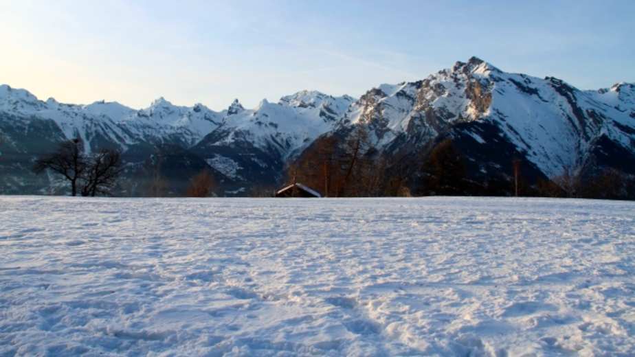 Schöne Winterwanderung im Wallis über Haute Nendaz zum Aussichtspunkt beim Sendemast. Von hier hat man einen sagenhaften Blick über das Rhonetal, den Haut de Cry, die Muverans, das Tal der Derborence und die umliegenden Gipfel der Walliser Alpen. Die Tour ist auch für geländegängige Kinderwagen geeignet.