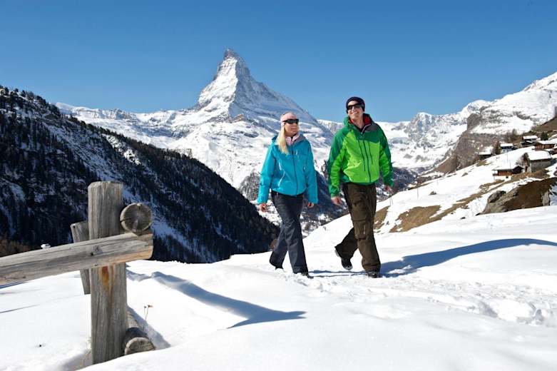 Winterwanderweg Zermatt - Sunnegga mit Blick aufs Matterhorn (4.478 m)Foto: Zermatt Tourismus, Quelle: Michael Portmann