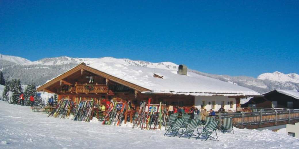 Die Hintermaisalm ist für ihren Sonnenreichtum bekannt. Liegestühle laden ein, die Wintersonne in vollen Zügen zu genießen.