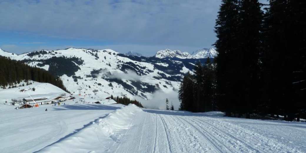 Schöne Winterwanderung hinauf zur Winkler Alm und zur Zwölferkogel Mittelstation in den Kitzbühler Alpen in der Region Saalbach Hinterglemm. Abschließend kann man mit der Seilbahn ins Tal schweben.