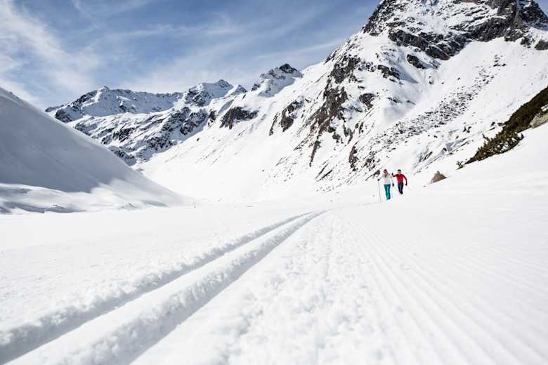 Die schöne, sonnenreiche Winterwanderung startet bei der Bergstation der Rifflseebahn im Pitztal bereits auf über 2.000 m Seehöhe und führt entlang der Rifflseeloipe und entlang des Rifflsees.