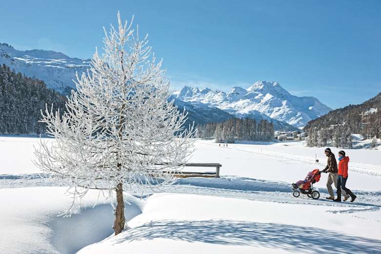 Diese leichte Wanderung im Kanton Graubünden über den gefrorenen St. Moritzer und Statzer See ist ein ganz besonderes Erlebnis für Gross und Klein und auch für Familien mit kleinen Kindern gut machbar. Das glitzernde Eis der Seen und die tief verschneiten Gipfel der Berninagruppe sind einfach märchenhaft und machen die Tour unvergesslich.