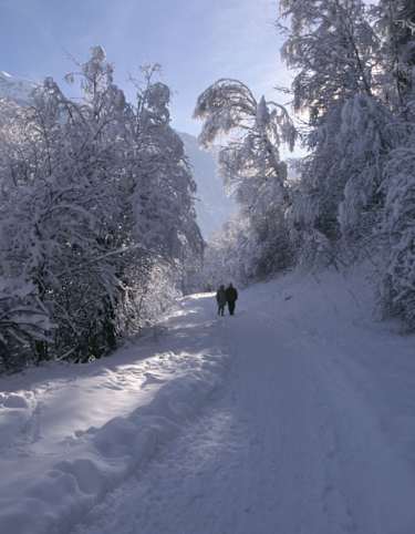Der Winterwanderweg zwischen Andermatt und Realp verläuft gemütlich entlang der Reuss und ist eine gute Möglichkeit das Urserntal zu Fuß zu erkunden. Die Route führt vorbei an Hospental mit dem imposanten "Turm der Herren" und dann durch Zumdorf, das offiziell zum kleinsten Dorf der Schweiz erklärt wurde. - Eine traumhafte Wanderung durch tief verschneite Winterlandschaft eingebettet zwischen der Gotthard-Gruppe und den Urner Alpen des Kantons Uri.
