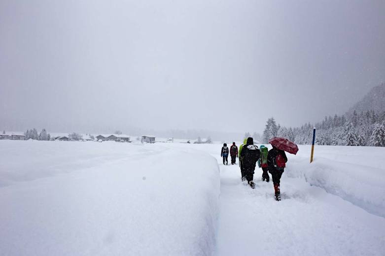 Die mehrtägige Winterwanderung in der Olympiaregion Seefeld in Tirol beginnt im kleinen Ort Burggraben in der Leutasch. Die Leutasch ist für ihren Schneereichtum bekannt und man darf sich schon auf der ersten Etappe, die bis nach Weidach führt, auf richtig schönes Winterwandern freuen.