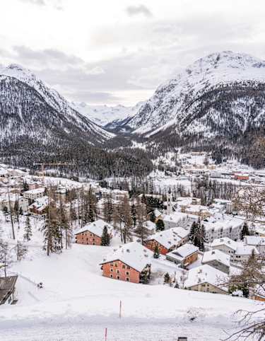 Winterwandern · Tessin Winterwanderung entlang der Steinbock Promenade in Pontresina