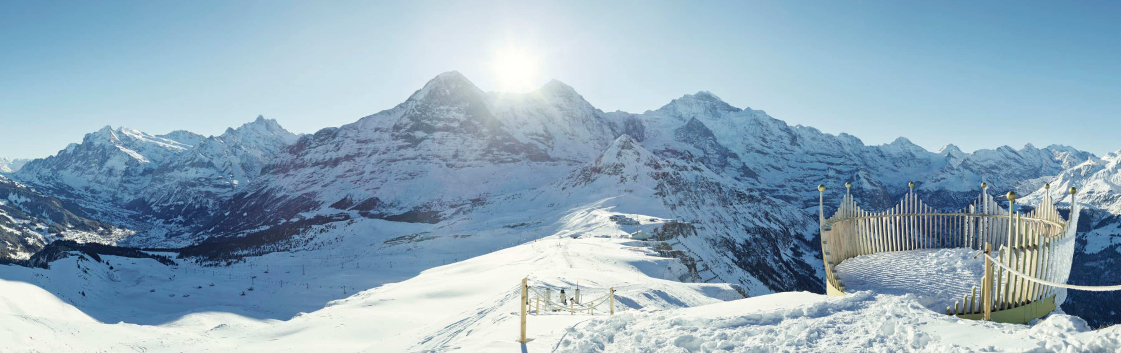 Schöne Winterwanderung im Berner Oberland für die ganze Familie. Nachdem man bequem mit der Gondel zu Bergstation Männlichen geschwebt ist, erreicht man den Gipfel des Männlichen in nur 45 Minuten. Von hier oben bietet sich ein fantastischer Rundblick auf das berühmte Dreigestirn von Eiger, Mönch und Jungfrau bis hin zum Thunersee. - Ein einmaliges Erlebnis.