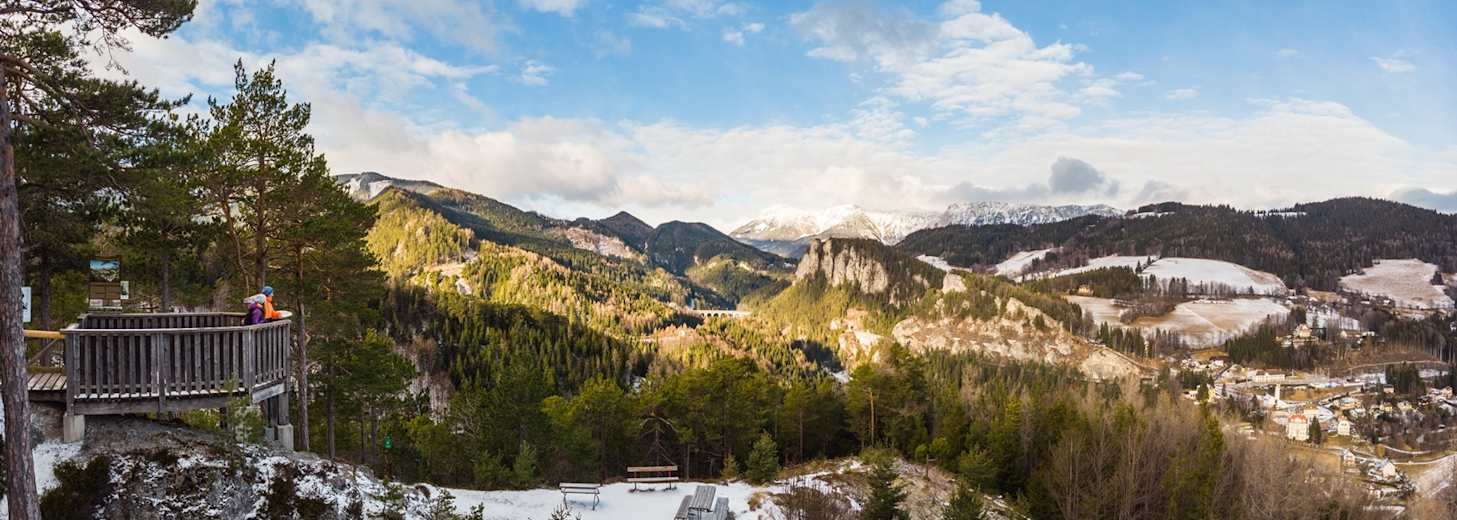 Man sollte ausreichend Zeit einplanen, um die eimaligen winterlichen Blicke auf das Weltkulturerbe Semmeringbahn auf sich wirken lassen zu können.