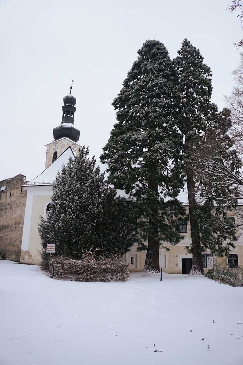 Ausgangspunkt für die Wanderung ist der Parkplatz beim Schloss Gloggnitz. Der Innenhof des Schlosses und der Schlosspark sind ganzjährig frei zugänglich. Ein besonderes Highlight sind hier im Schlosspark die beiden rund 150 Jahre alten Mammutbäume. Je nach Schneelage können die Kinder auch am Spielplatz im Park toben.