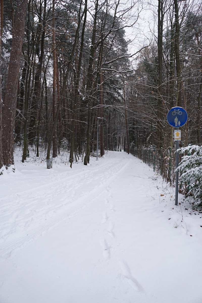 Vom Schlossparkplatz geht man ein Stück bergauf, bis man zum Ende der Parkmauern kommt und biegt am kleinen Schotter-Parkplatz nach rechts in den Waldweg ein. Man spaziert durch den Wald bergab und geht dann gerade aus weiter auf der asphaltierten Straße.