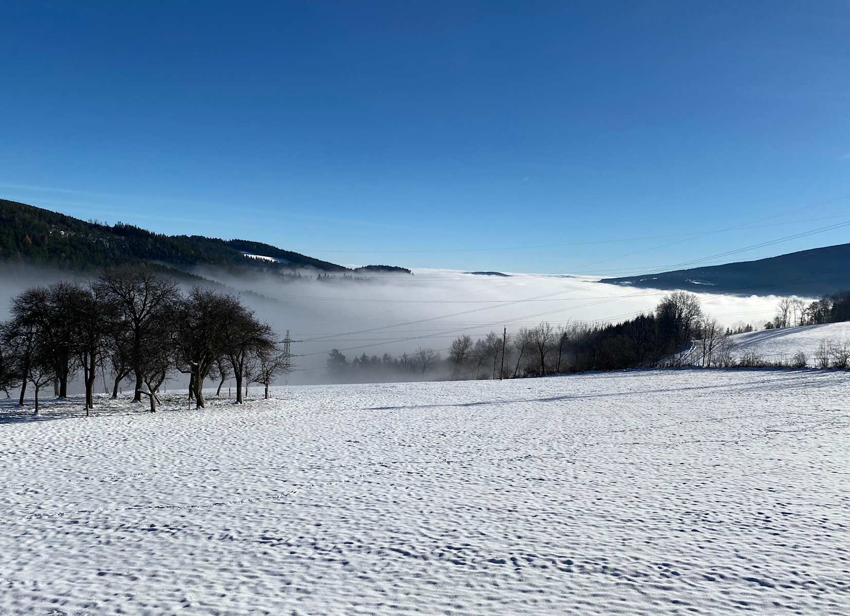 Diese schöne Winterwanderung im Rax-Schneeberggebiet in Niederösterreich verbindet zwei Gasthäuser - den Ramswirt und den Diewald-Wirt - miteinander und bietet wunderschöne Aussichten ins Wechselland.