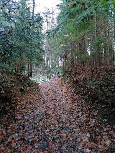 Von dort am Friedhof vorbei bis der Weg beim Wiedenhof wieder einmündet. Vorbei am Molzbachhof und die erste Möglichkeit rechts abbiegen Richtung „Kirchberger Panoramaweg“ bis zur Hauptstrasse. Vor der „Rosenvilla“ links abbiegen und nach 50 m erreicht man den Gasthof St. Wolfgang.