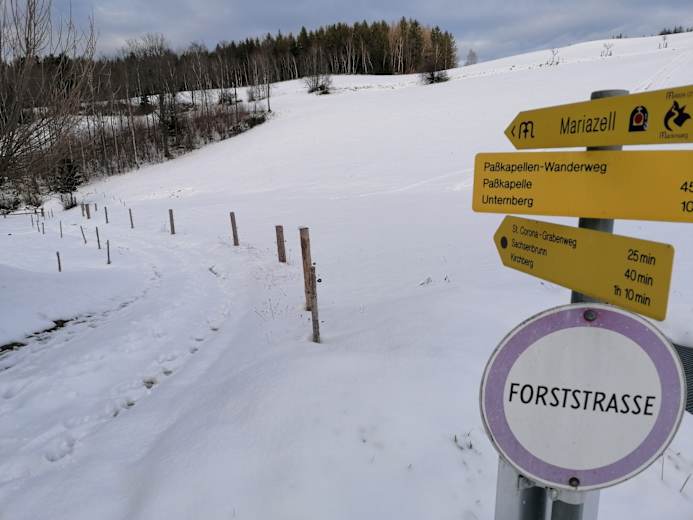 Eine gemütliche Winterwanderung im Wechselgebiet in Niederösterreich von Unternberg über den Mariazeller Pilgerweg bis nach Kirchberg am Wechsel.