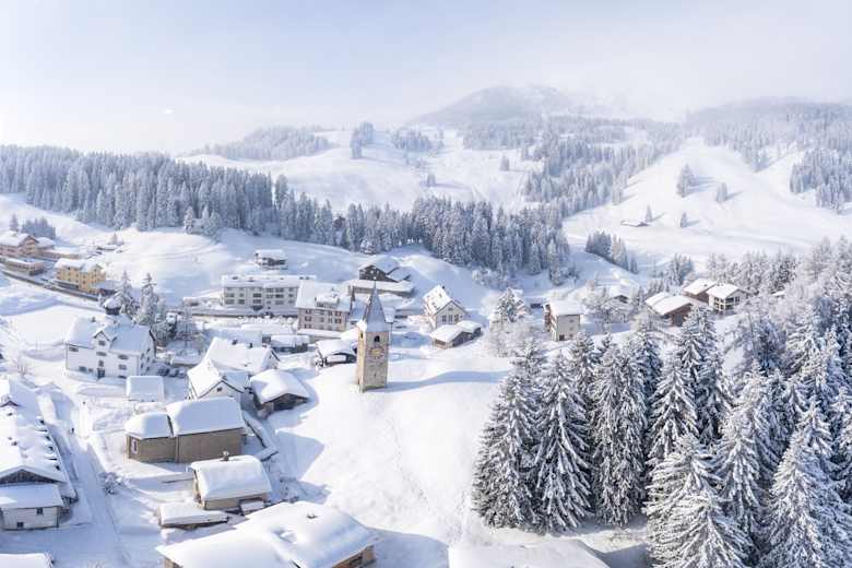 Schöne, mittelschwere Winterwanderung vom Ortszentrum Lenzerheide nach Parpan in Graubünden in der Schweiz.