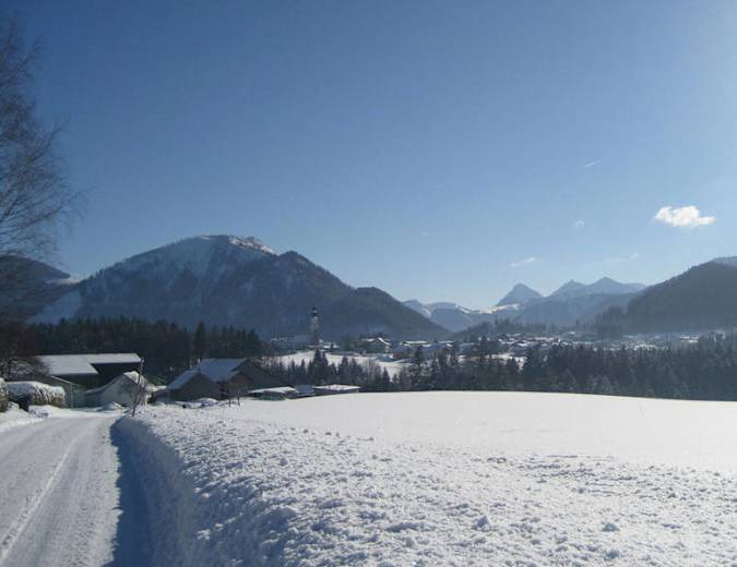 Abwechslungsreiche Rundwanderung bei Faistenau in der Fuschlseeregion im Salzkammergut auf geräumten Winterwanderwegen.