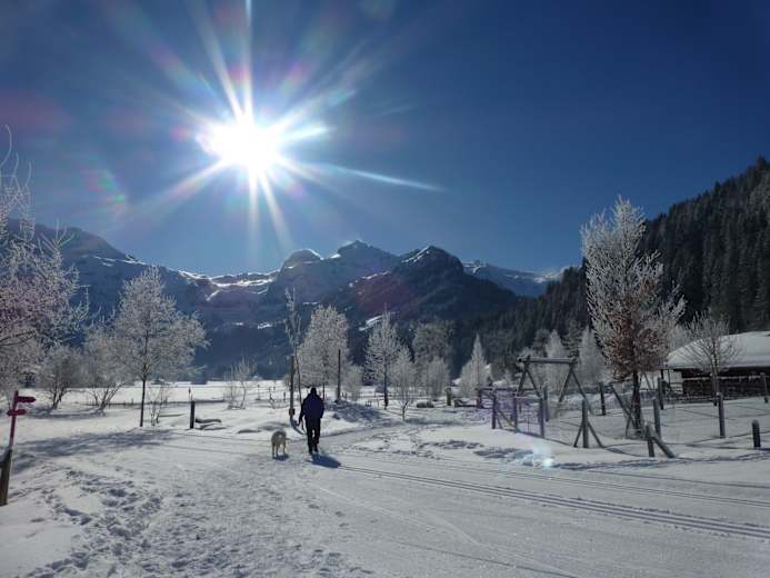 Die Rückkehr ins Dorf erfolgt direkt dem Ufer der Simme entlang oder bei genügend Schnee über den neuen Winterwanderweg via Sumpfbach, Rothenbach und KUSPO zurück an die Lenk.