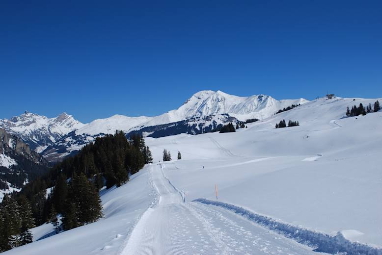 Sehr aussichtsreiche Rundwanderung am Rande des Skigebiets Lenk–Betelberg im Berner Oberland in der Schweiz. Besonders eindrucksvoll ist dabei die Sicht auf das Wildstrubel- und Plaine-Morte-Massiv sowie auf die zerklüfteten Abbrüche der Stübleni. Jedenfalls eine abwechslungsreiche Winterwanderung, die dank Seilbahnunterstützung für die ganze Familie möglich ist.