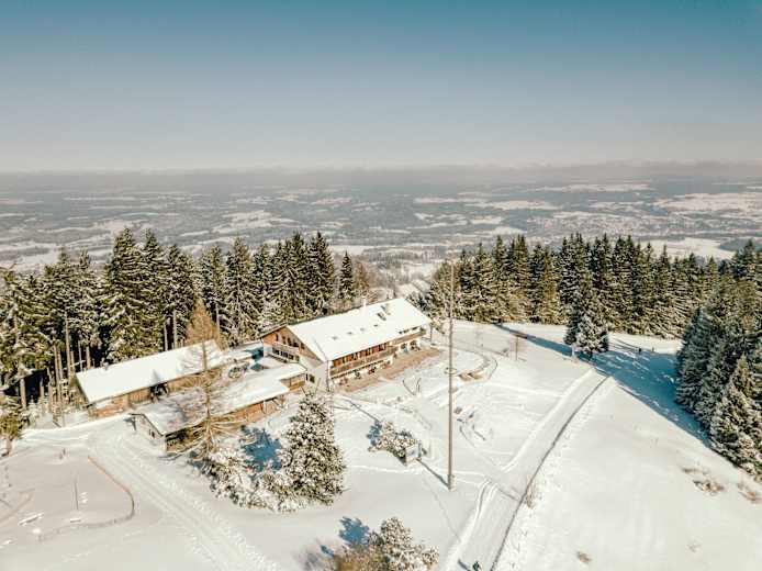 Oben auf 1.203 m angekommen kann man den Ausblick in das Bayerische Oberland genießen. Bei gutem Wetter erhascht man einen Blick über den Starnbergersee und den Ammersee, bis hin nach München sowie vom Karwendel bis ins Wettersteingebirge.