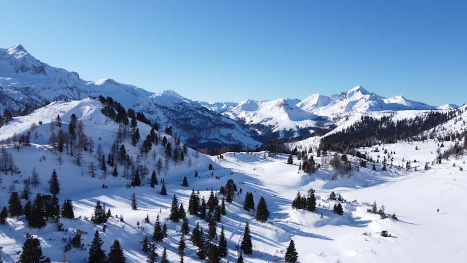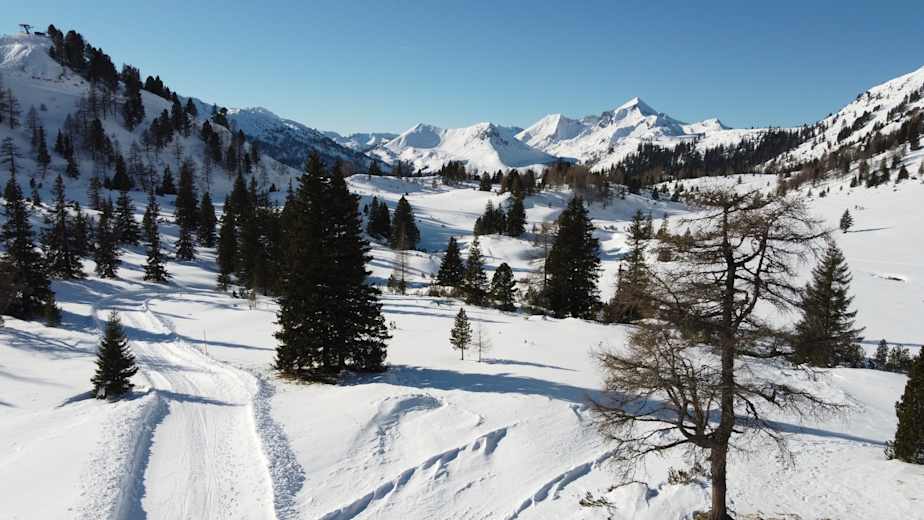 Einfach los wandern - so das Motto am Winterwanderweg Schubertmulde in Obertauern in Salzburg. Die wunderschöne Landschaft lädt zum Abschalten ein und unterwegs laden einige Almen zur Einkehr ein.