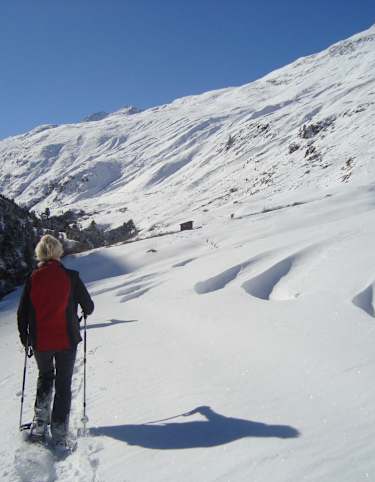 Hoch hinaus geht es bei dieser Winterwanderung am Stubaier Gletscher in Tirol. Ausgangspunkt ist die Bergstation Gamsgarten auf über 2.600 m Seehöhe.