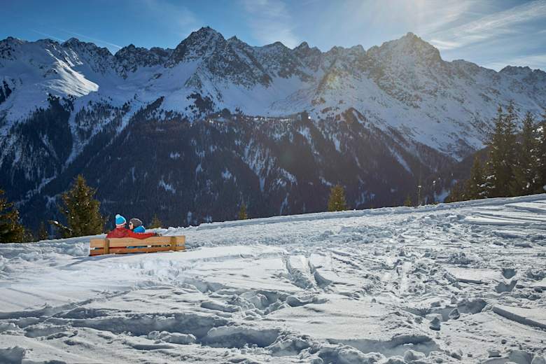 Diese mittelschwere Winterwanderung im Paznaun in Tirol führt durch den winterlichen Wald in Richtung Friedrichshafener Hütte. Kurz unterhalb der im Winter geschlossenen Hütte befindet sich ein besonders schöner Aussichtsplatz. Ausgangspunkt ist der Parkplatz "Friedrichshafener Hütte" im Ortsteil Valzur.
