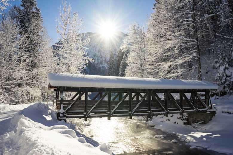 Die Winterwanderung zum malerischen Freibergsee beginnt in Oberstdorf im Allgäu. Die abwechslungsreiche Wanderung bietet traumhafte Ausblicke, unter anderem auf die Skiflugschanze von Oberstdorf.
