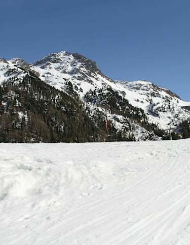 Diese einfache Winterwanderung führt von Sedrun in Graubünden über sonnige Hänge zum wunderschönen Aussichtspunkt Cungieri.