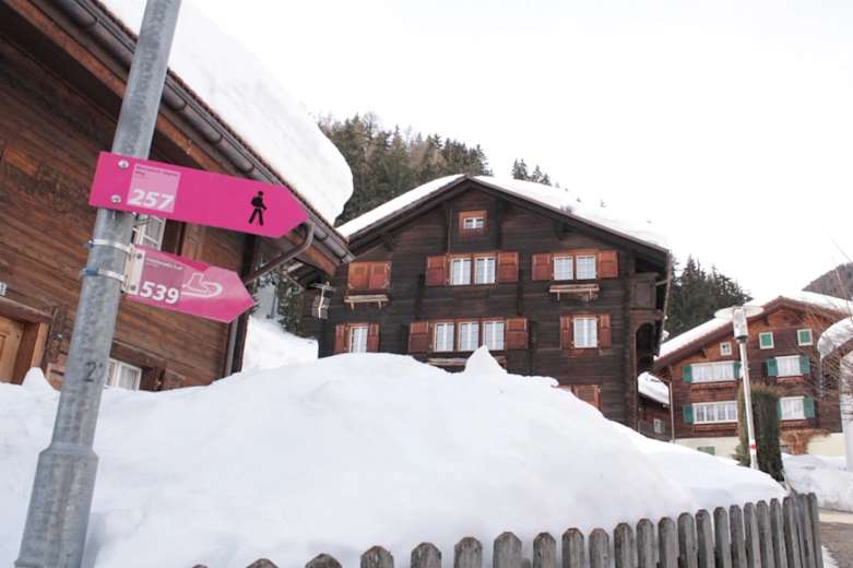Diese leichte Winterwanderung in der Region Sedrun Disentis in Graubünden führt durch die Fraktionen Segnas, Acletta und Clavaniev mit Aussichtspunkt Muntatsch.