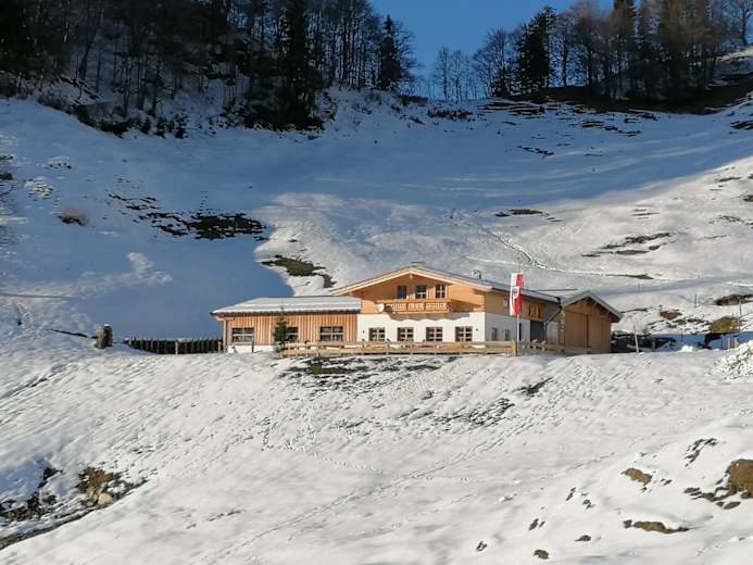 Die Haraualm hat auch im Winter geöffnet und bietet sich für eine gemütliche Einkehr an.