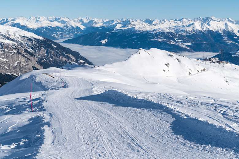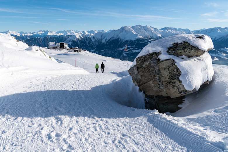 Von der Talstation in Laax schwebst du mit der Bergbahn zum Startpunkt der Wanderung am Crap Sogn Gion. Vorbei an Snowparks, wo du mit etwas Glück einen waghalsigen Trick beobachten kannst, wanderst du entlang des Bergrückens meist sanft hinauf.