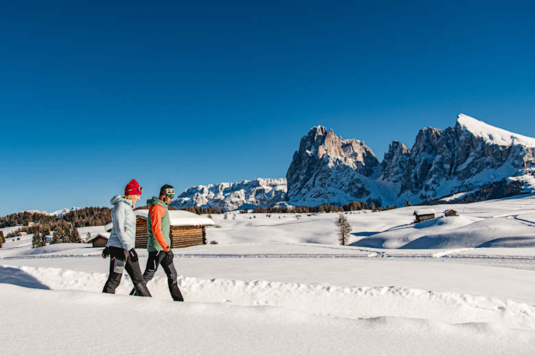 Diese Winterwanderung über die Seiser Alm, Europas größter Hochalm, führt bequem auf gut gespurten Wegen. Beeindruckend ist die Weite und das Panorama auf die schönsten Dolomitengipfel. Besonders markant heben sich die Santner- und Euringerspitze nördlich des Schlernmassivs hervor und die Lankofelgruppe beherrscht die Kulisse dieser schönen Landschaft in Südtirol.