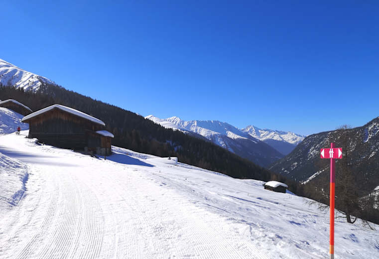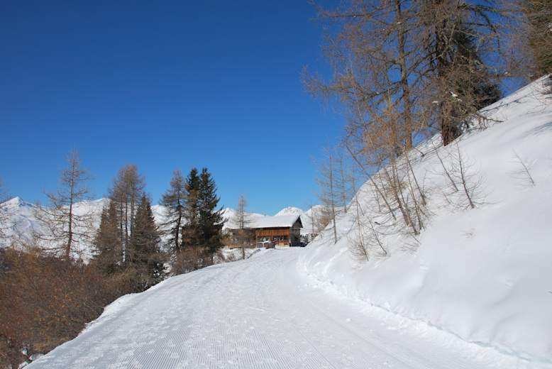 Die Winterwanderung kann auch im Tal gestartet werden, bergauf verlängert sich die Gehzeit jedoch um ca. eine Stunde.