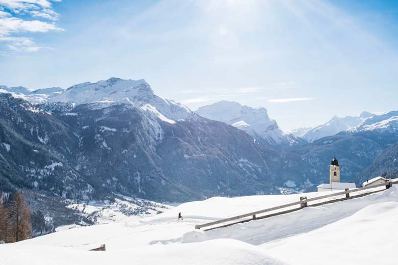 An der südöstlichen Flanke des Piz Beverin liegt der Schamserberg. Der Winterwanderweg startet eingangs Mathon. Er führt durch den Wald, vorbei am Tipi-Zelt und weiter zum verträumten Maiensäss Nutschias. Oberhalb der Waldgrenze wird offenes, flaches Gelände erreicht, das ideal für einen Rast ist: Viel Sonne und eine herrliche Aussicht auf Muttner Horn, Piz Curvér, Piz la Tschera und Surettahorn erwarten hier die Winterwanderer. Vorbei an den idyllischen Maiensäss-Hütten von Dros geht es via Tipi-Zelt und durch den Wald wieder ins verträumte Bergdorf Mathon.