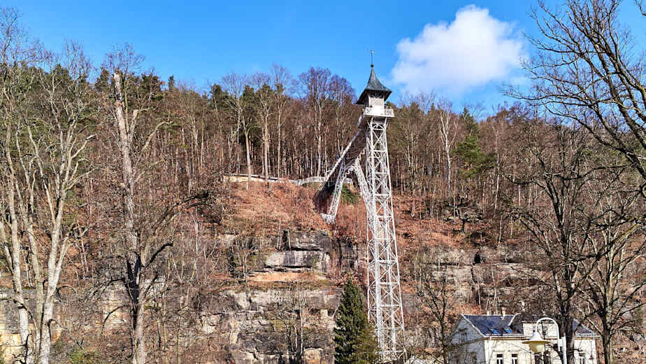 Vom Zentrum Bad Schandaus geht es direkt mit dem Historischen Aufzug hinauf nach Ostrau. Hier hat man einen herrlichen Blick über die Stadt ins Elbtal und zum Lilienstein, der über all dem zu thronen scheint. Einen kurzen, aber knackigen Anstieg zu der Ostrauer Siedlung später, steht man direkt am neuen Skywalk. Dieser wurde erst Ende 2018 eingeweiht.