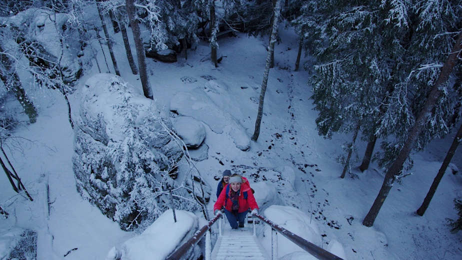 Die mittelschwere Winterwanderung führt von Cunnersdorf in der Sächsischen Schweiz zum Katzenstein. Die Tour führt in einen eher ruhigen Teil des Mittelgebirges.