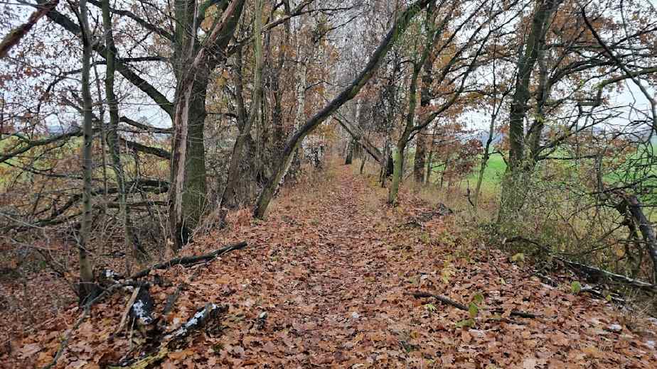 Beginnend beim Hotel „Zur Post“ wandert man entlang eines Feldes auf einem Feldweg, vorbei an mehreren Teichen. Der Weg führt dann weiter auf die ehemalige Bahnstrecke Pirna-Dohma, auf welcher man über die stillgelegten Gleise entlang eines Baches läuft.