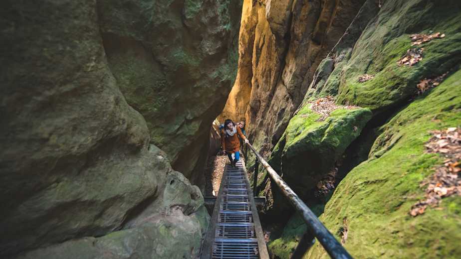 Die mittelschwere Winterwanderung bei Rathen in der Sächsischen Schweiz führt zu zwei schönen Tälern. Die Rundtour ist gut mit öffentlichen Verkehrsmitteln zu erreichen und bietet Einkehrmöglichkeiten.
