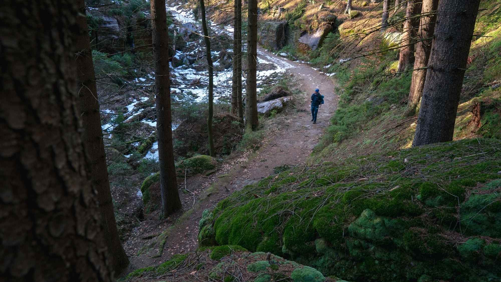 Auf dem weiteren Weg kommt man zwar leider an den Spuren moderner Forstarbeit vorbei, dennoch sind die Ferkelschlüchte ein kurzer, aber sehenswerter Abschnitt. Die kleine Zschandstraße führt dann direkt ins Kirnitzschtal, wo man entlang der Straße, 3 bedeutende Mühle passiert. Die Felsenmühle, die Neumannmühle und die Buschmühle. Direkt nach dem Gasthaus „Zum Kirnitzschtal“ geht dann ein unscheinbarer Weg nach links ab. Diesem folgt man entlang von Wiesen, Feldern und am Knechtsbach vorbei bis nach Lichtenhain. In Lichtenhain findet man eine sehr schöne Einkehr im Restaurant und Hotel „Berghof Lichtenhain“. Gestärkt und munter geht es dann auf einem angenehmen Feldweg wieder hinab ins Kirnitzschtal zum Lichtenhainer Wasserfall.