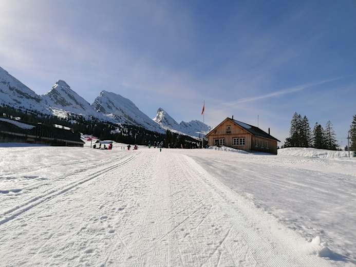 Von Alt St. Johann geht es mit der kombinierten 4erGondel-/Sesselbahn zur Alp Sellamatt. Anschliessend dem markiertem Winterwanderweg bis Zinggen.
