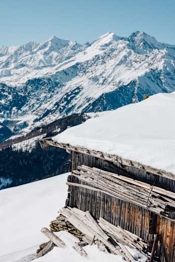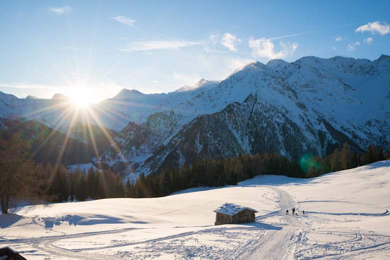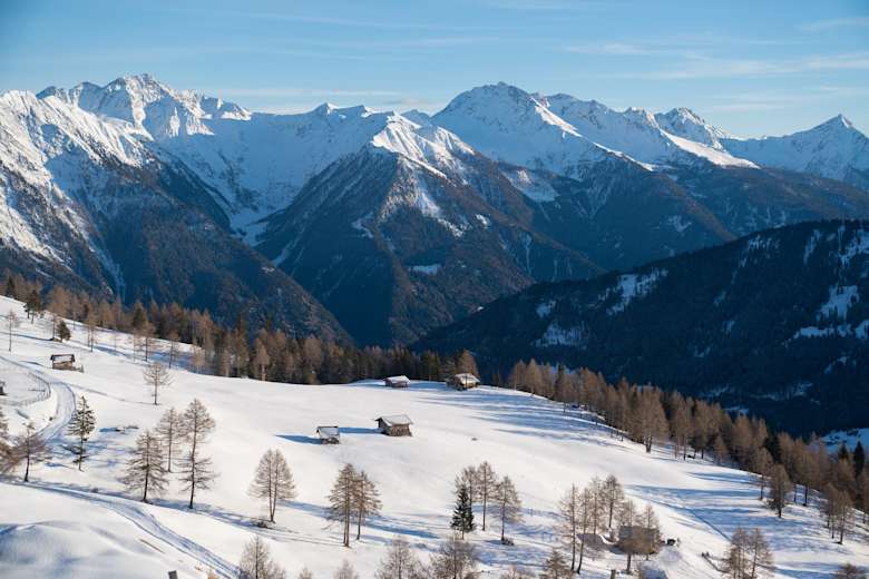Eine beliebte Winterwanderung in Stuls, an den Sonnenhängen im hinteren Passeiertal in Südtirol.