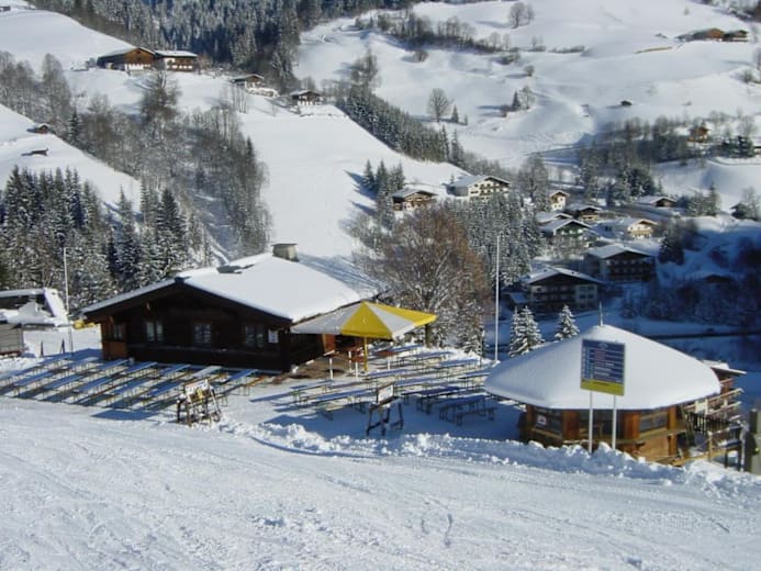 Kurze Winterwanderung mit Einkehrmöglichkeit in den Kitzbühler Alpen: Von Jausern führt der Spaziergang in sanfter Steigung zur Jauser Alm, wo eine Einkehr lohnt.