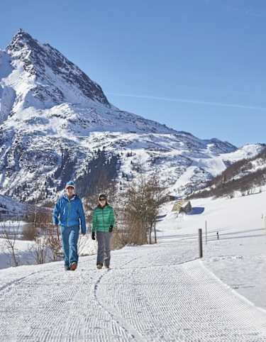 Der Einstieg befindet sich vor dem Hotel Landle in Galtür. Der gut präparierte Weg erfordert keine besondere Kondition und eignet sich ideal für einen gemütlichen Winterspaziergang. Genieße die ruhige, verschneite Landschaft in Galtür umgeben von den beeindruckenden Gipfeln der Silvretta.