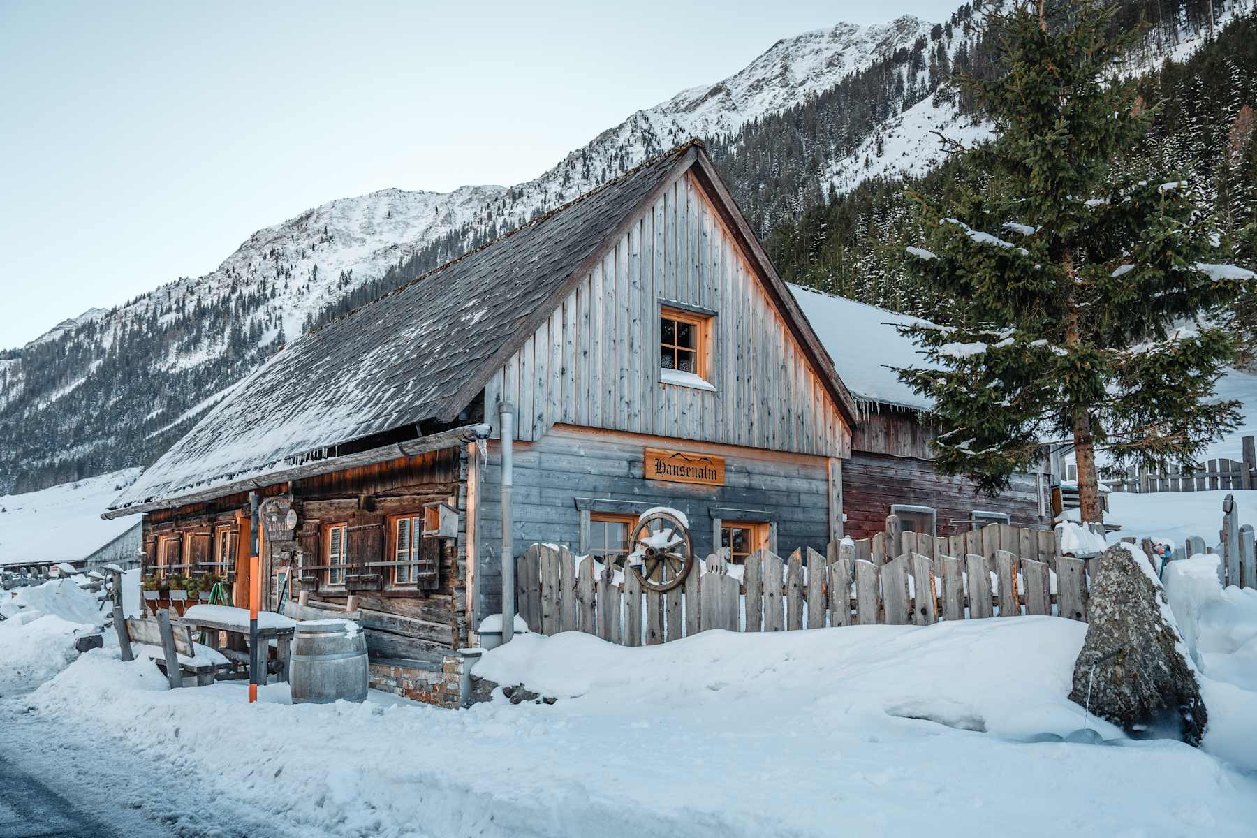 Die urige Hansenalm im Naturpark Sölktäler hat im Sommer und auch im Winter geöffnet. Daher kann man sie auch im Winter entlang einer einfachen Winterwanderung besuchen und dort gemütlich einkehren. Eine schöne Tour für die ganze Familie in der Region Schladming-Dachstein.