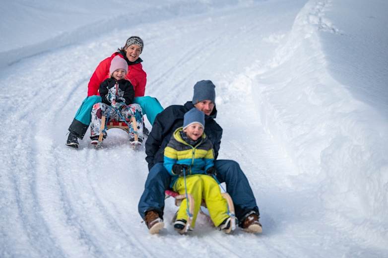 Unbedingt auf der Kleinbergalm eine Rodel ausleihen und damit ins Tal sausen.